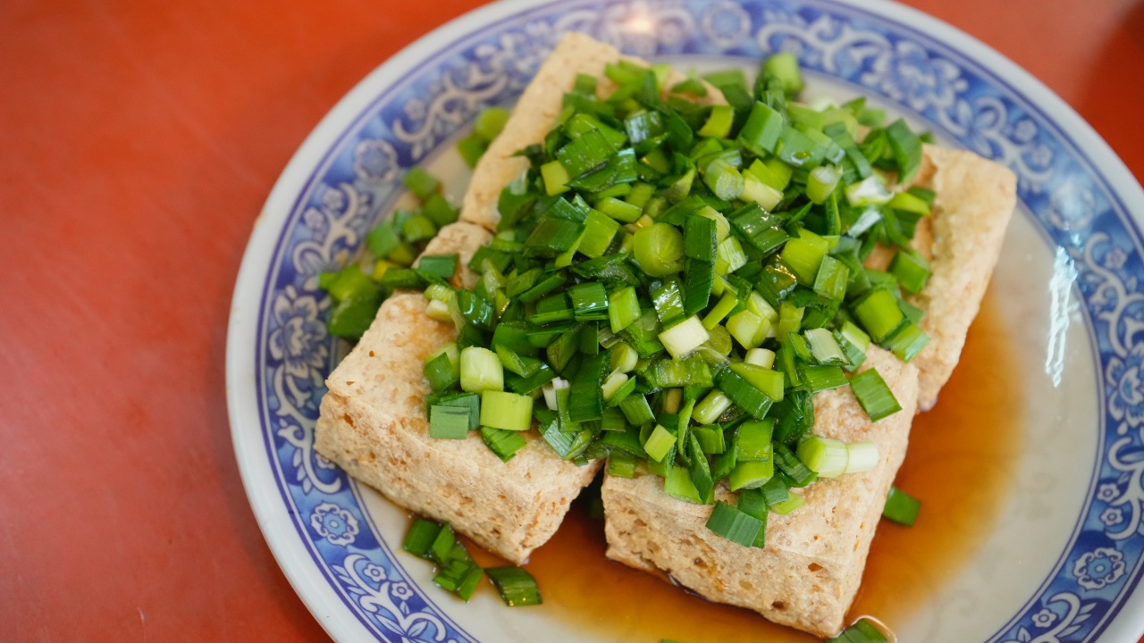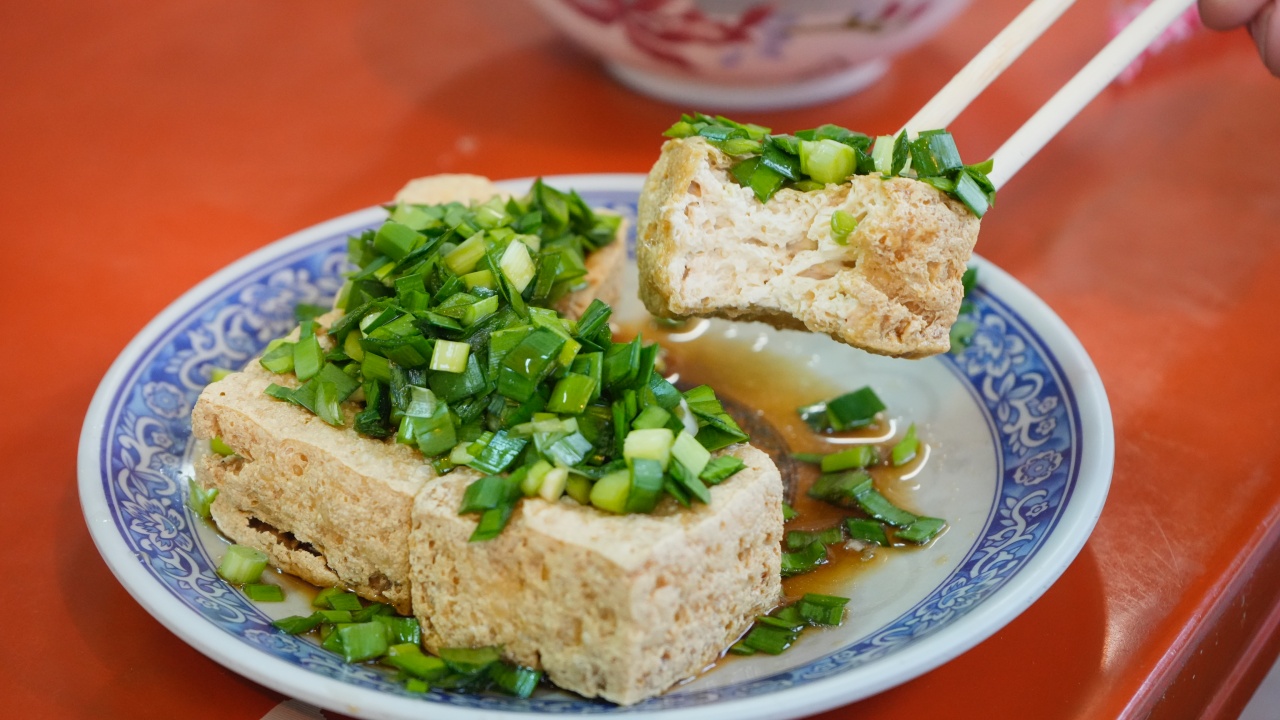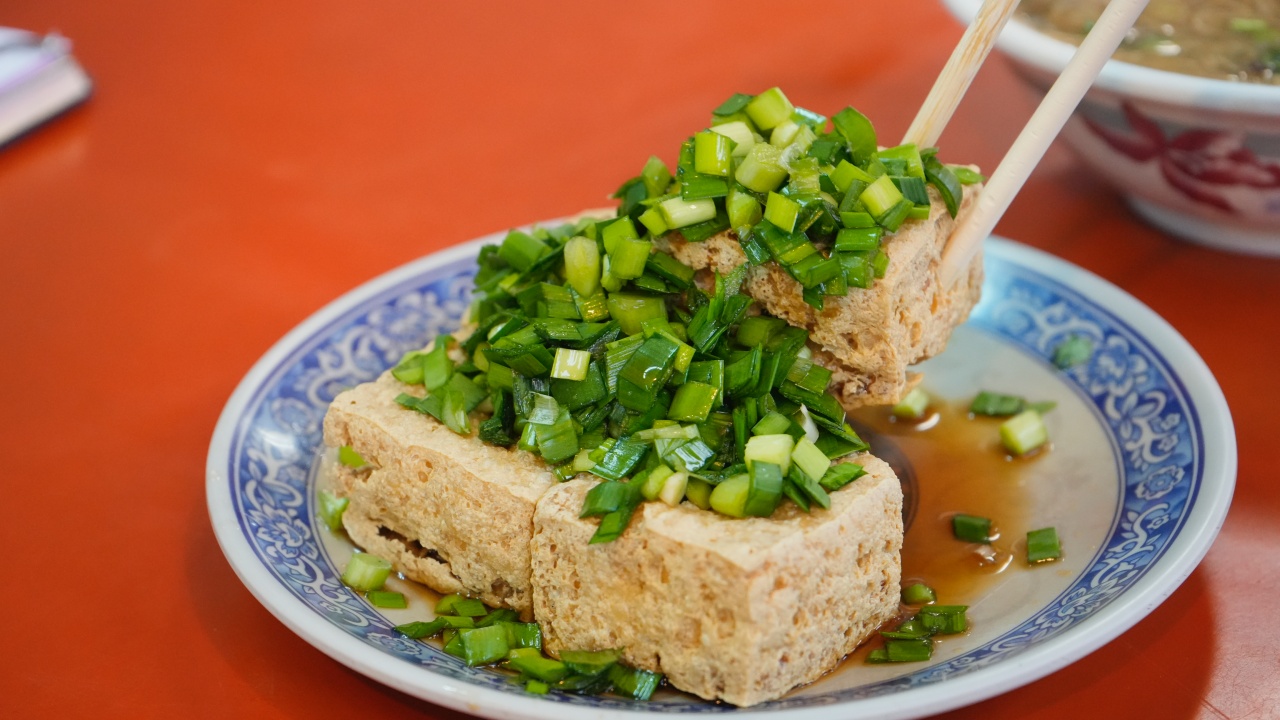 白白嫩嫩的臭豆腐,炸到外皮金黃酥脆、內裡多汁,不會炸過頭變成硬硬的那種,搭配韭菜的清脆與獨特辛香特調醬汁,鹹香開胃超好吃