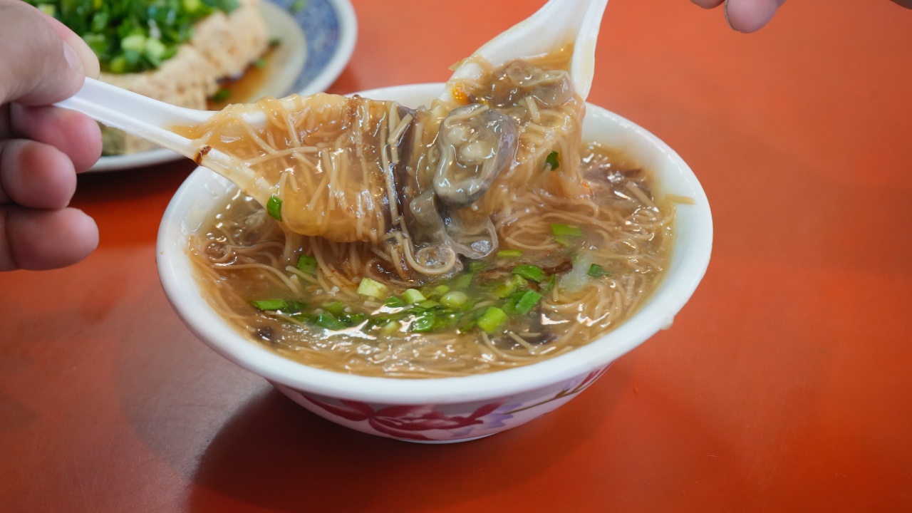 大腸麵線大腸處理得很好,沒有腥味,麵線湯頭濃郁卻不死鹹,帶有淡淡沙茶香氣,是讓人一口接一口的大腸麵線🤤