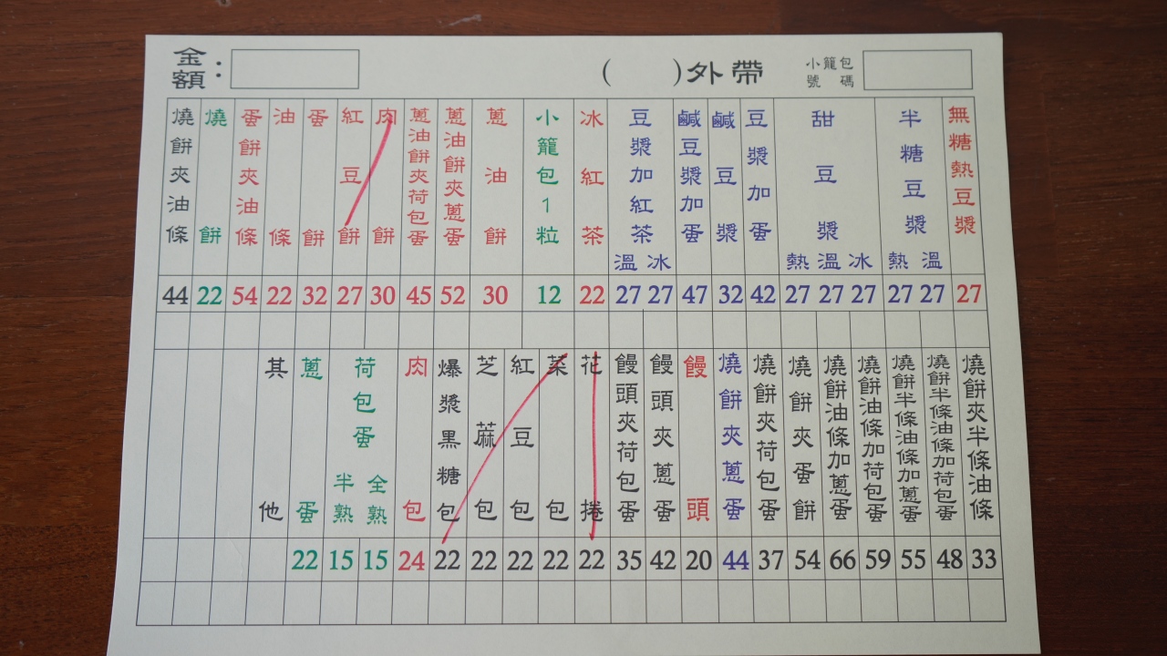 這家無名早餐只有外帶,先看菜單再跟店家買單領取號碼牌。