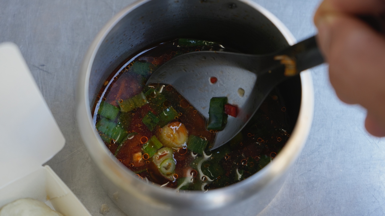 單吃我覺得口味偏淡,如果像我一樣比較喜歡重口味的,可以在搭配店家自製的蔥醬、醬油,鹹香開胃,讓人一口接一口。