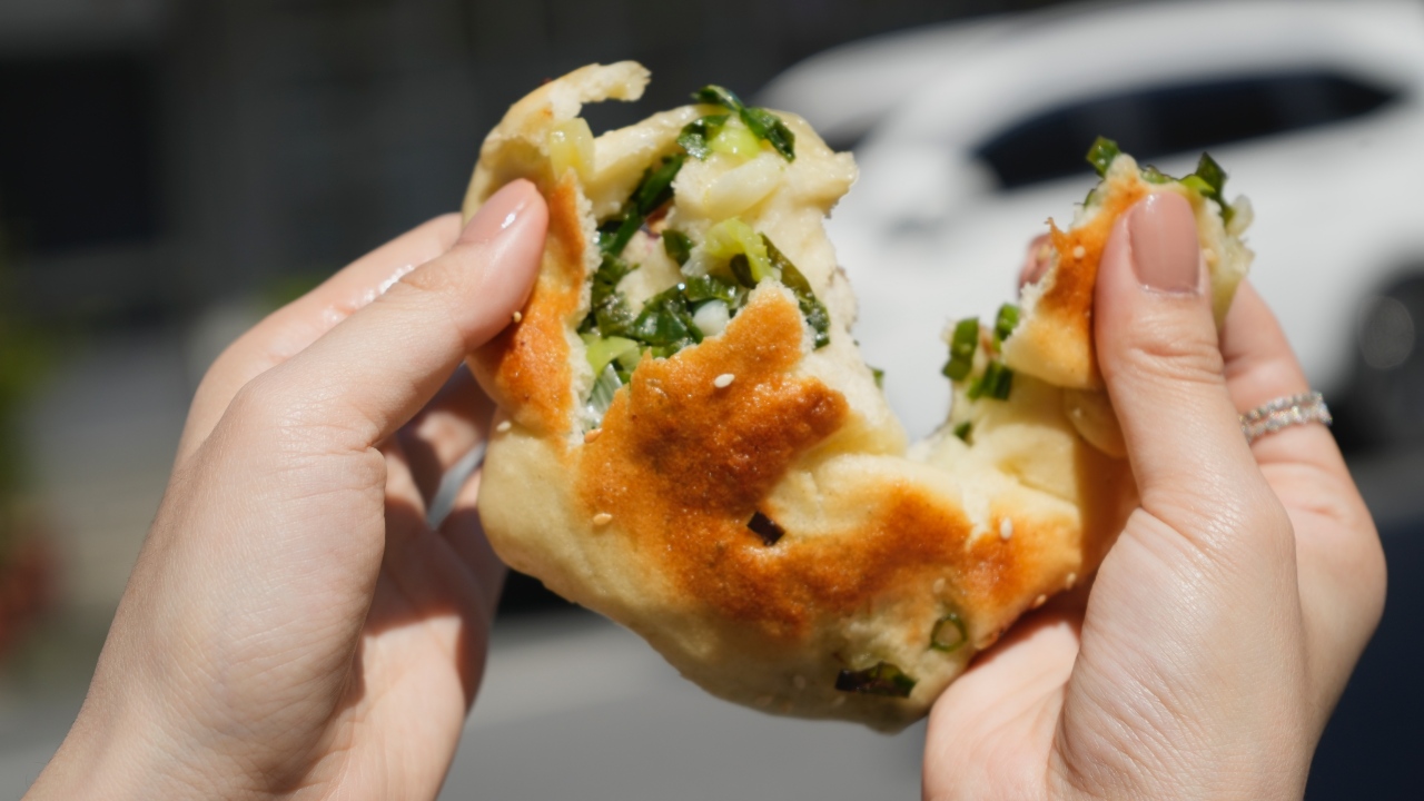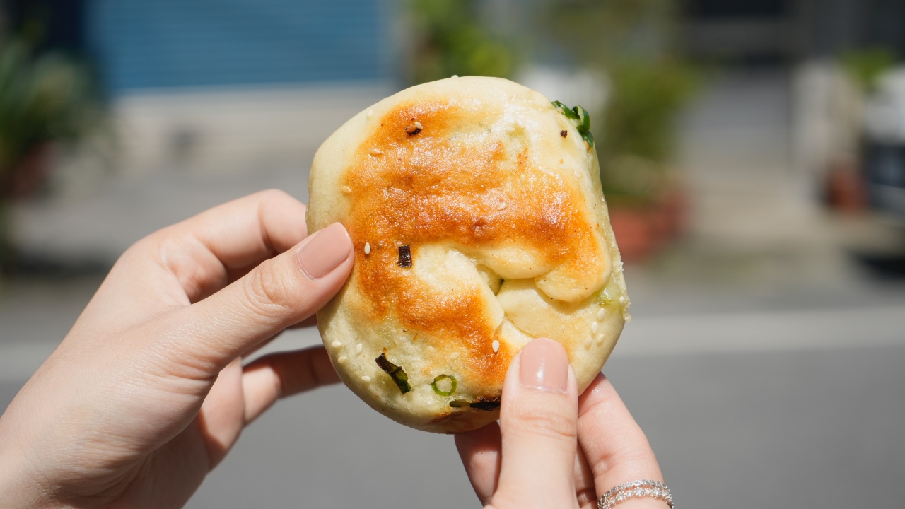 裡面包了滿滿的蔥花,香氣撲鼻而來,使用老麵發酵口感非常扎實,建議趁熱吃比較美味。
