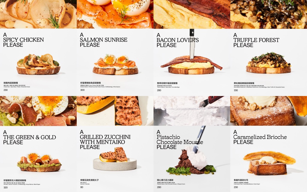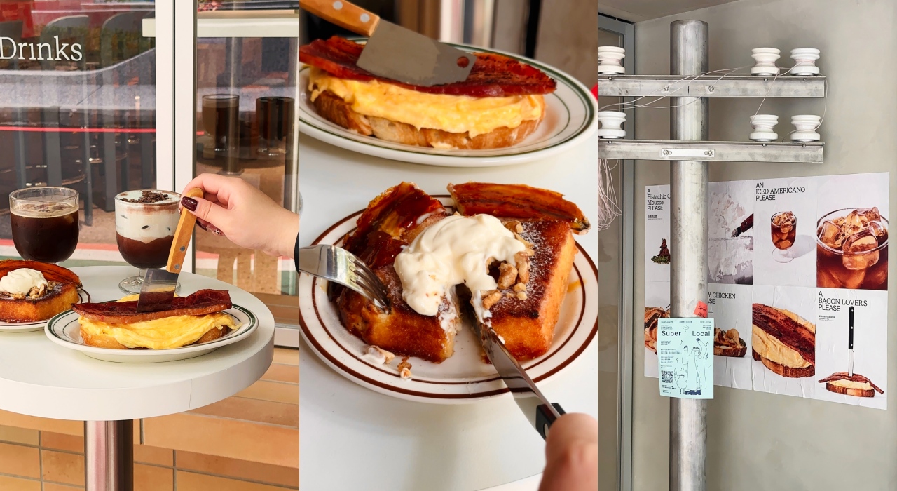 Local local 中山是線上菜單點餐,上面是店家的招牌必點,最有名的就是與貳樓Second Floor聯名的「超級酸種」麵包系列,其中有個外型吸睛,培根上面插小刀子的整條培根炒蛋超級酸種,真的Q到不行🥓🔪